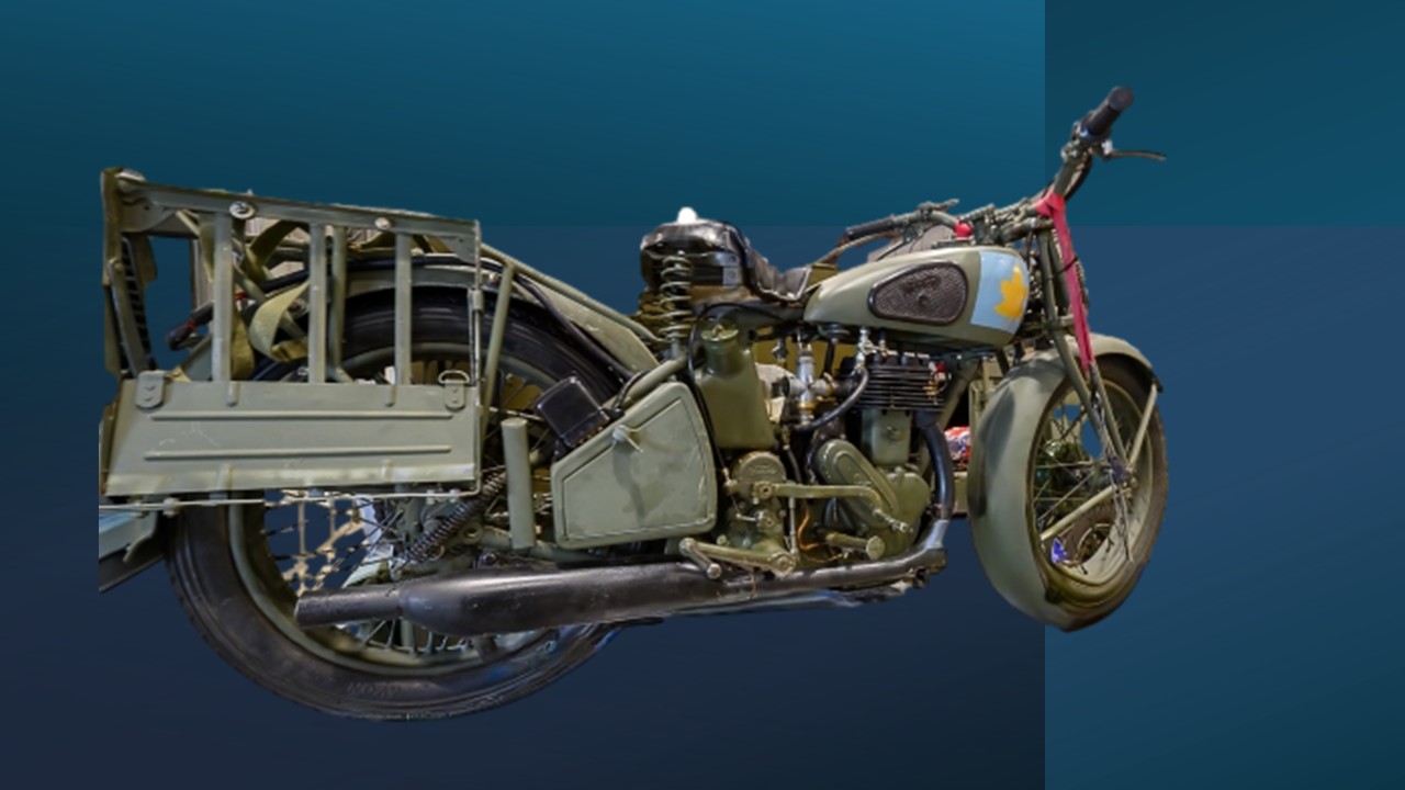 In early 1940, Canada placed an order for 4000 Norton Motorcycles for use by the Canadian Army. This particular motorcycle was produced between 1940 and 1942 (exact details cannot be confirmed), and represents a machine used by a unit of the Royal Canadian Corps of Signals, 3rd Canadian Infantry Division, circa 1944, in North-West Europe.
