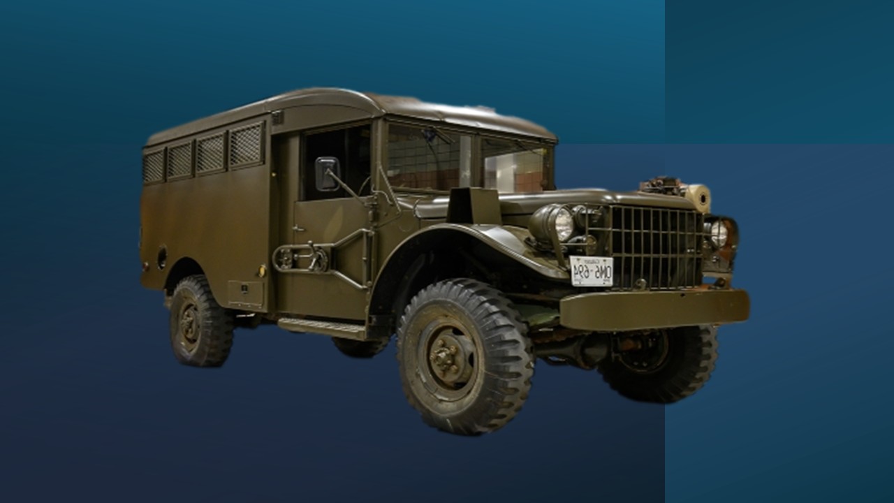 Over 4,500 Canadian versions that were produced by Chrysler Canada between 1951 and 1955. The Canadian trucks were similar to the US made versions except for the larger, Canadian produced 251 cubic inch engine and improved transmission. Other differences included the standardized fitting of a metal “Arctic Cab” instead of the canvas top seen on US examples. As with the US versions, Canadian trucks were made with and without, front mounted PTO driven winches.