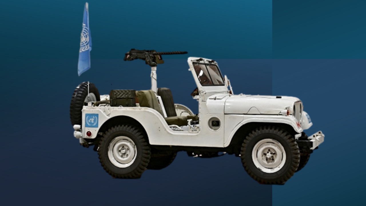 The vehicle on display represents a Jeep deployed with the Canadian contingent to the UN forces in Cyprus – UNFICYP.